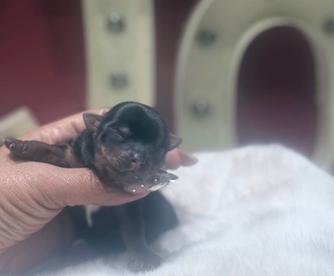 Bentley is APRI & AKC registered with CHAMPION BLOODLINES. He is a true King & none of the house rules applies to him. Smart & Confident with a tiny body, lil bark, & big heart! The kids love to pick him up and hold him hostage so keeps a distance from the kids due to his small size he avoids them in fear of being hurt. He is a picky eater in a bougie way lol and loves to hoard his food for a later time! We love him just the way he is our spoiled baby!