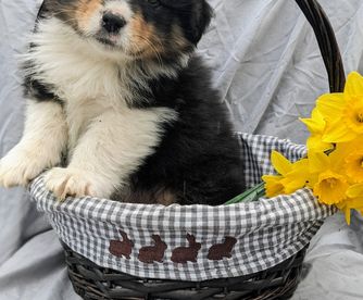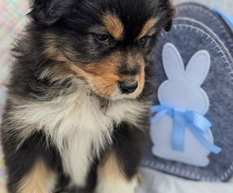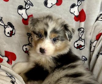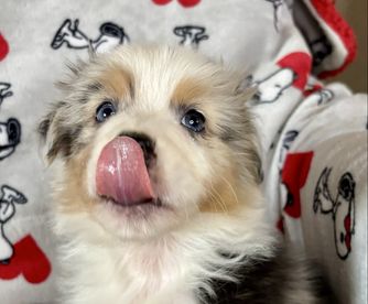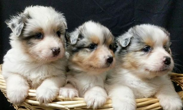 Our puppies include red merle, blue merle, red, and black tri-color. Colors will vary depending on the parent dogs.