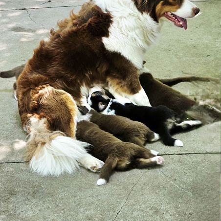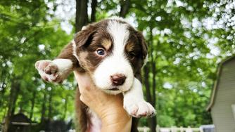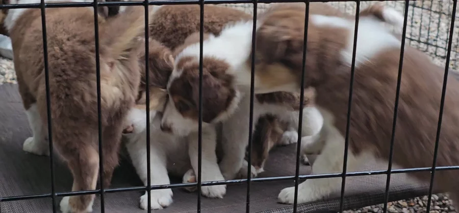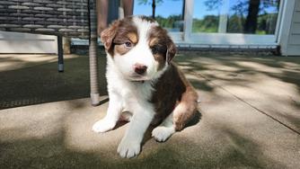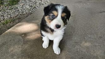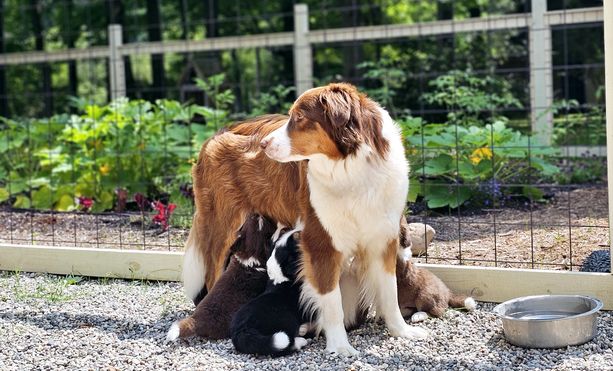 Our puppies include tri-color, blue, red, white and blue, and white and red. Colors will vary depending on the parent dogs.