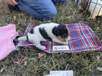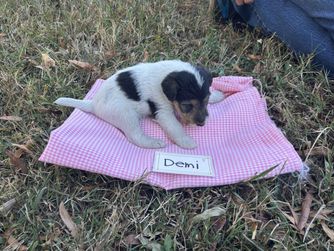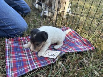 Our puppies are white black and tan. Colors will vary depending on the parent dogs.