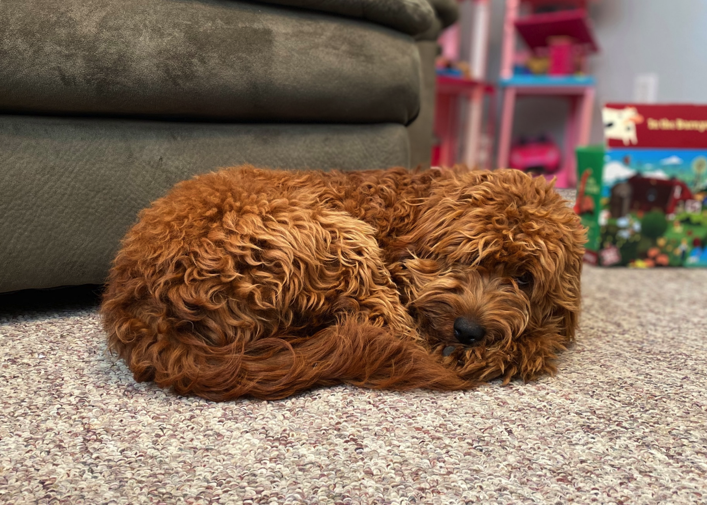 My husband had grown up with a golden retriever. Upon doing research on that breed, a golden doodle popped up. I instantly fell in love! We started out with a golden retriever, but I knew I had to one day have a doodle. The rest is history!