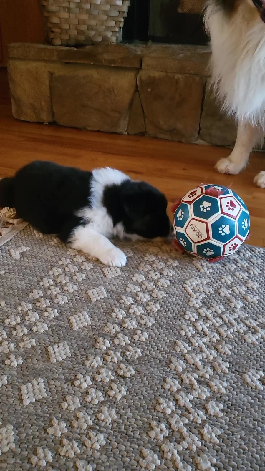Low Country Bob discording his Dad's favorite ball..this boy is a dream. Absolutely loves to be held, a real people person ...I am in love !