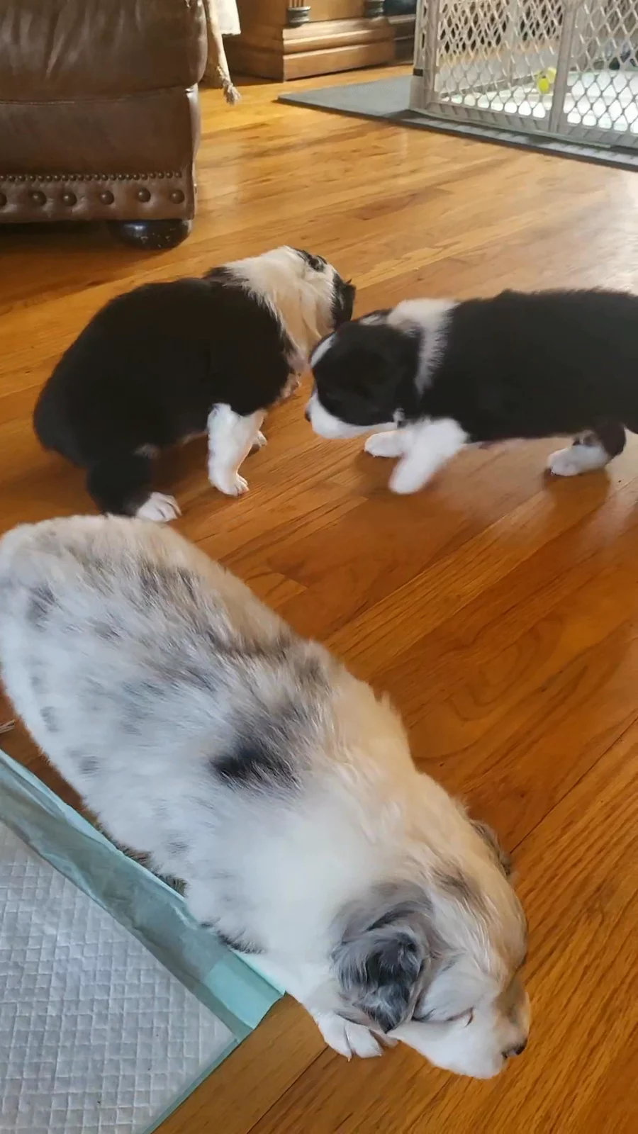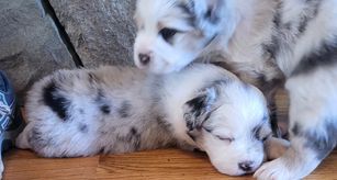 Our puppies include red merle, blue merle, black tri-color, and red tri-color. Colors will vary depending on the parent dogs.