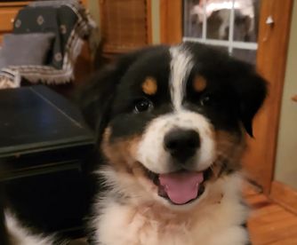 Blueridge Ben! Larger boned like Sire. 65-68 lbs as an adult, gorgeous coat and wiggles his fluffy but everything he greets you dream boy would show nicely to a show home or be your best ever hiking lake or outdoor buddy