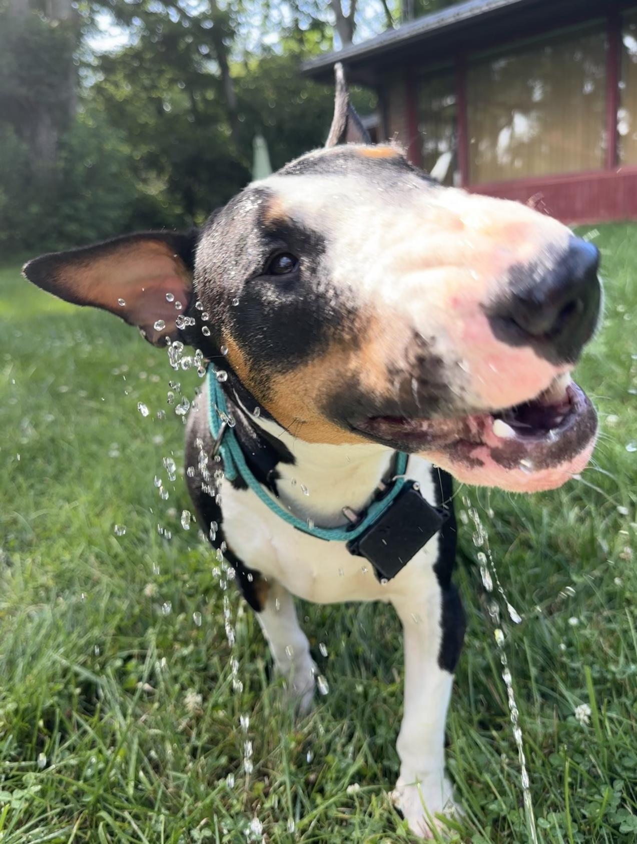 Turtle is an absolute sweetheart and loves everyone. She’s very levelheaded a good natured. Her favorite thing to do is chase the water from the hose.