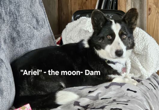 Ariel has a super sweet personality. She is very calm, yet absolutely loves to play and run with our Labrador Retrievers. Aruel was bred to Blue and her first litter was August 2025. Ariel produced 5 puppies, 3 blue merle and 2 black and white puppies. 4 of the puppies were evaluated as show quality.