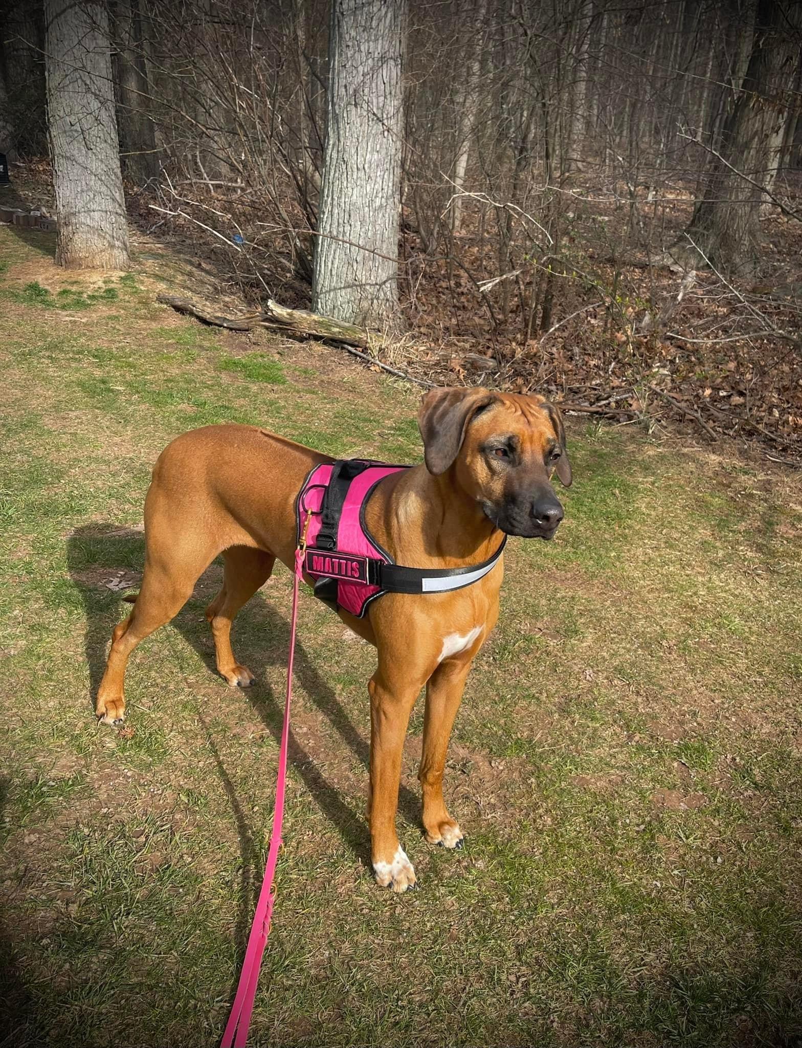 Mattis is a female Rhodesian Ridgeback. Carefully selected as a great representative of her breed, Maureen decided to make her part of their program. Maureen has passed Good Dog’s screening process, which involved a review of their breeding practices, environment, and the mental and physical health of their dogs.