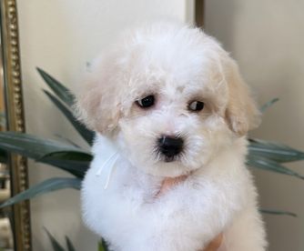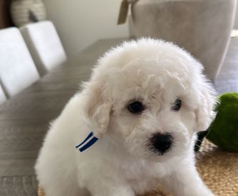 Bubbles is a male Bichon Frise. Carefully selected as a great representative of his breed, Lyudmyla decided to make him part of their program. Lyudmyla has passed Good Dog’s screening process, which involved a review of their breeding practices, environment, and the mental and physical health of their dogs.