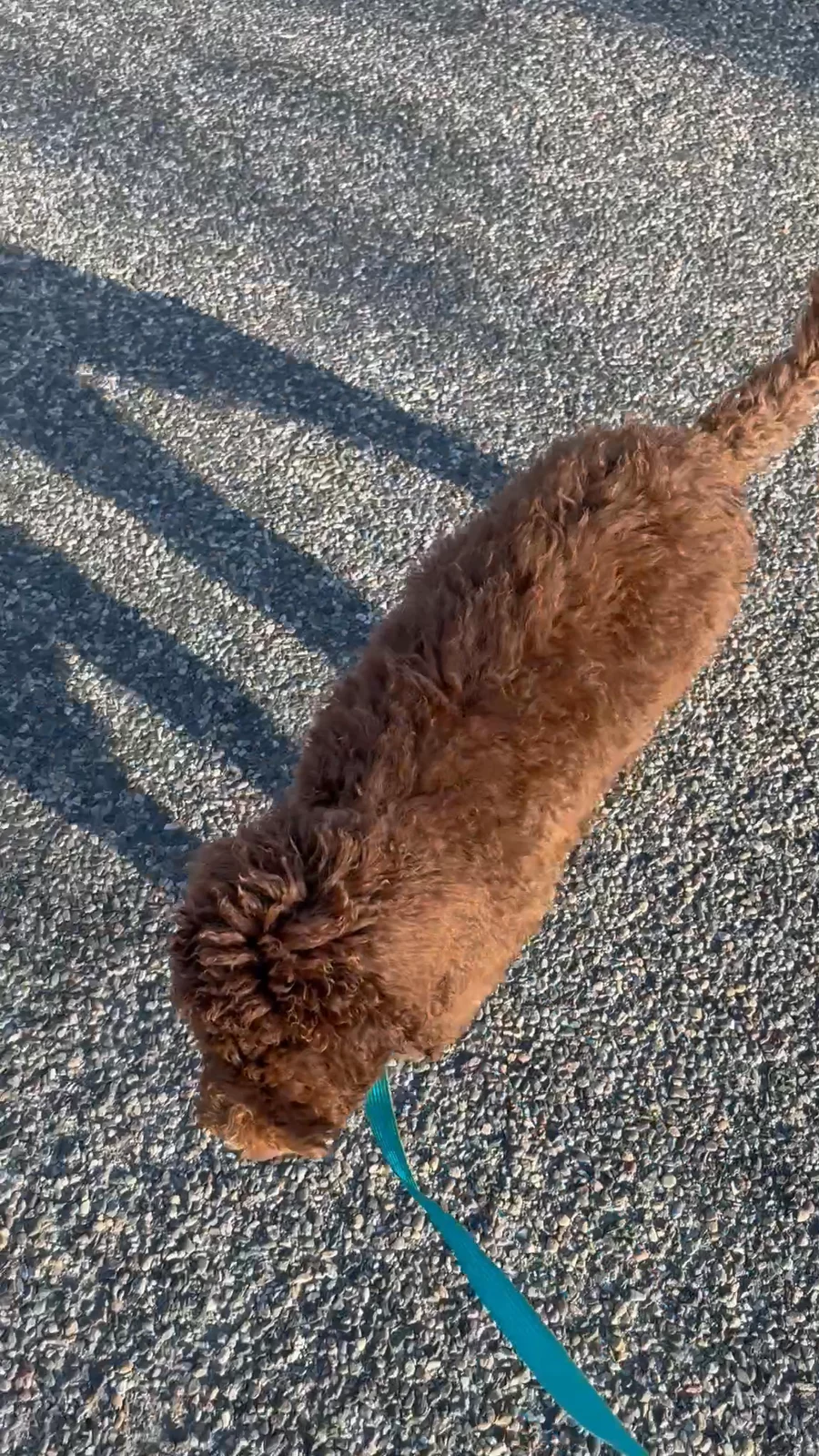 Albany, first time on leash did amazing. #doodles # phantom chocolate #doodlesoftiktok #familydogs #doodlesofmontana #goldendoodlepuppies.