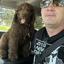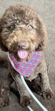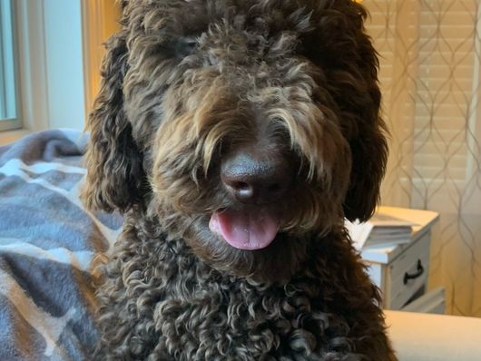 He is ready for summer with his cool haircut. Waiting for his forever family #Goldendoodle’s #chocolate #family dog #love for doodles#mom #forever-family