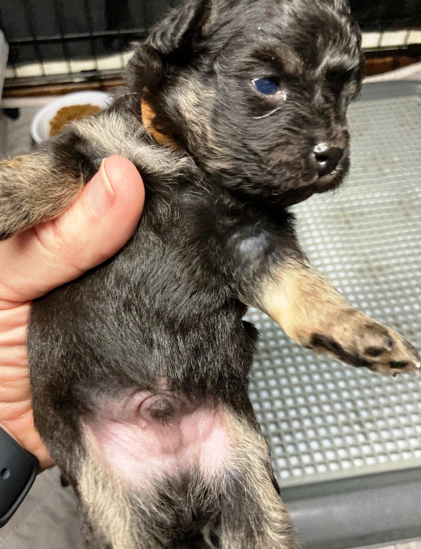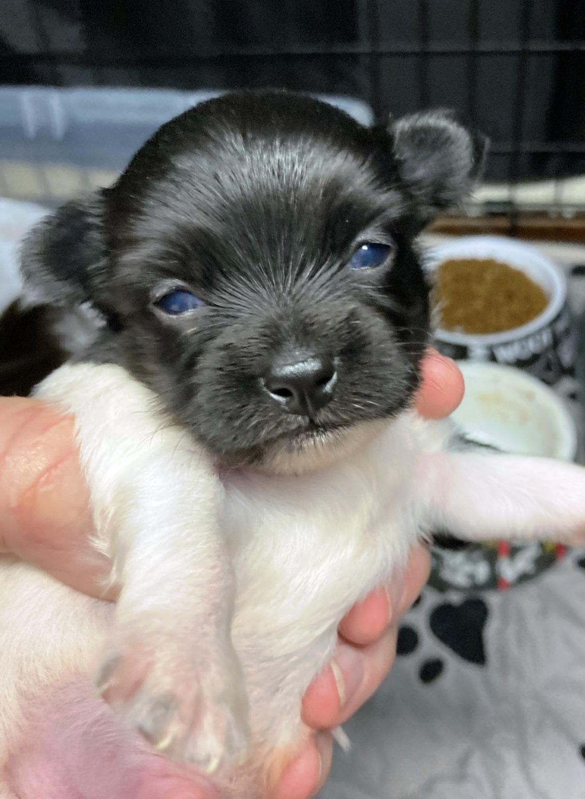 Black Sabled Fawn/Black Mask with White Markings. 4 lbs. "Rough" coat.