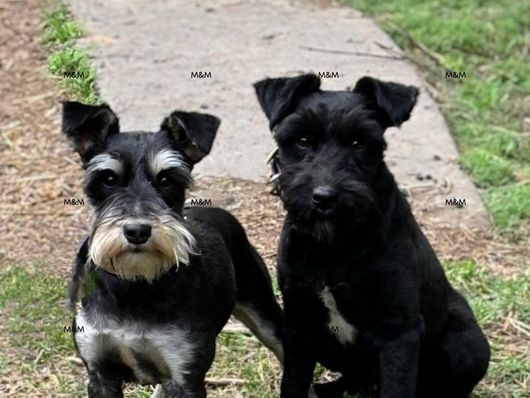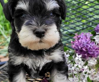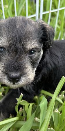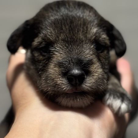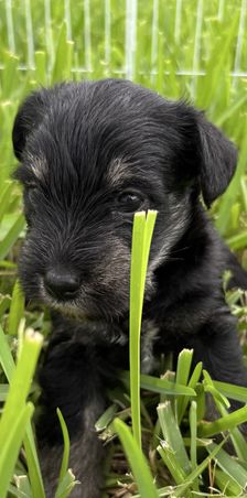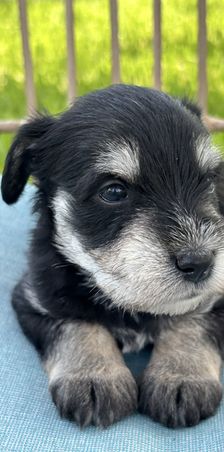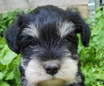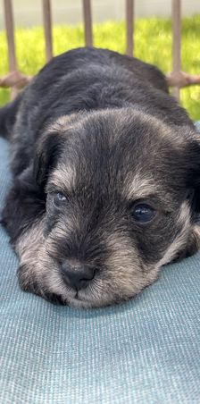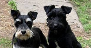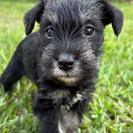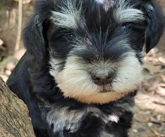Our puppies include salt and pepper, black, and black and silver. Colors will vary depending on the parent dogs.