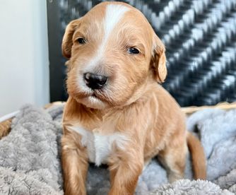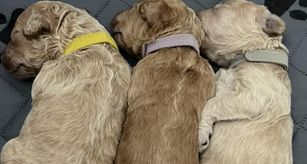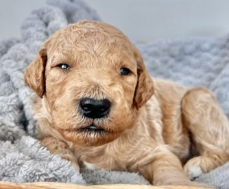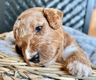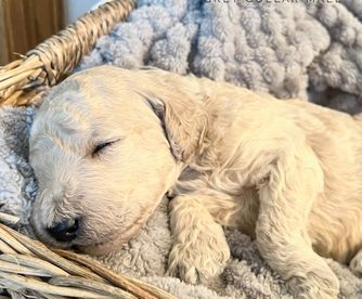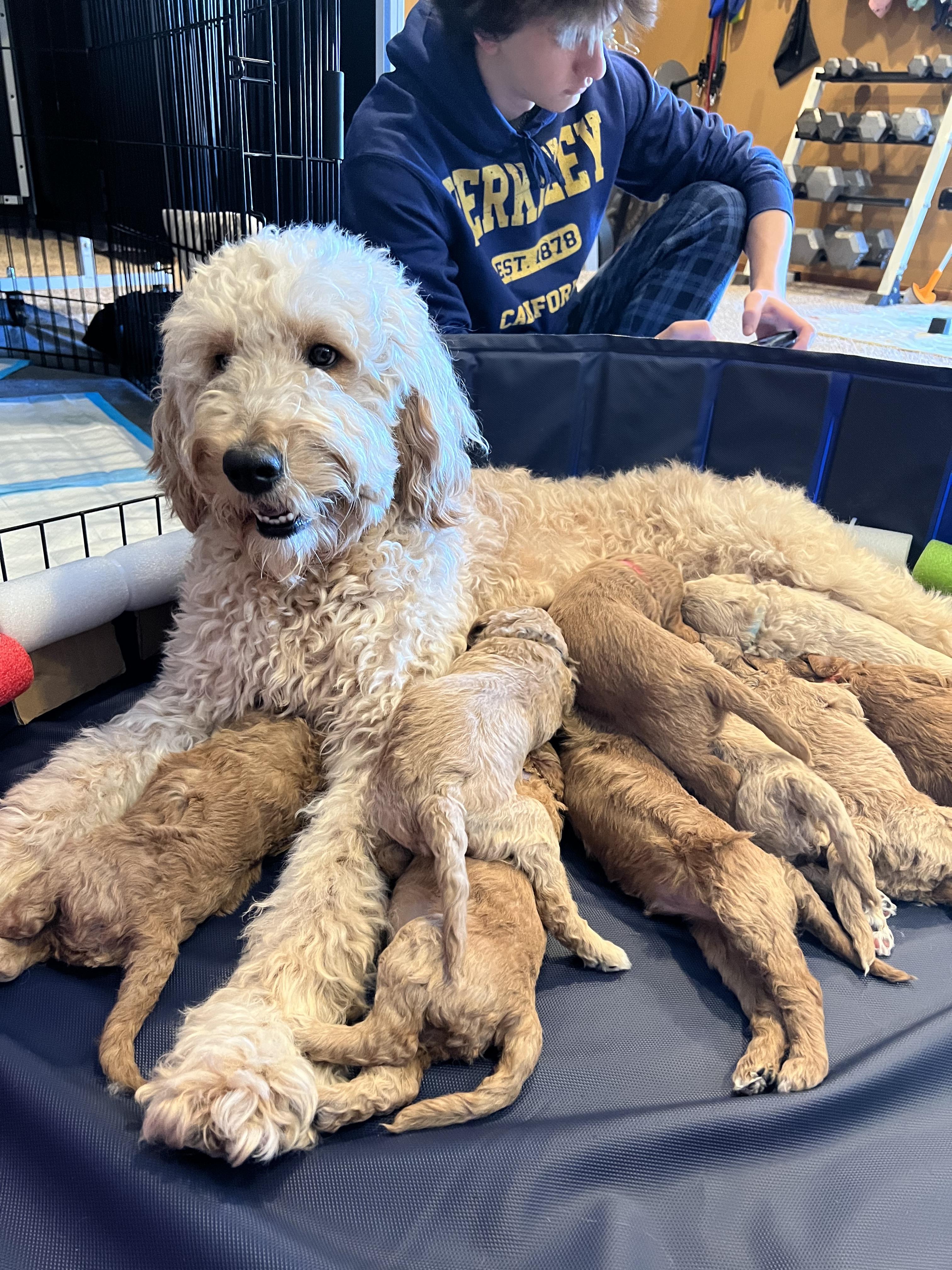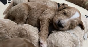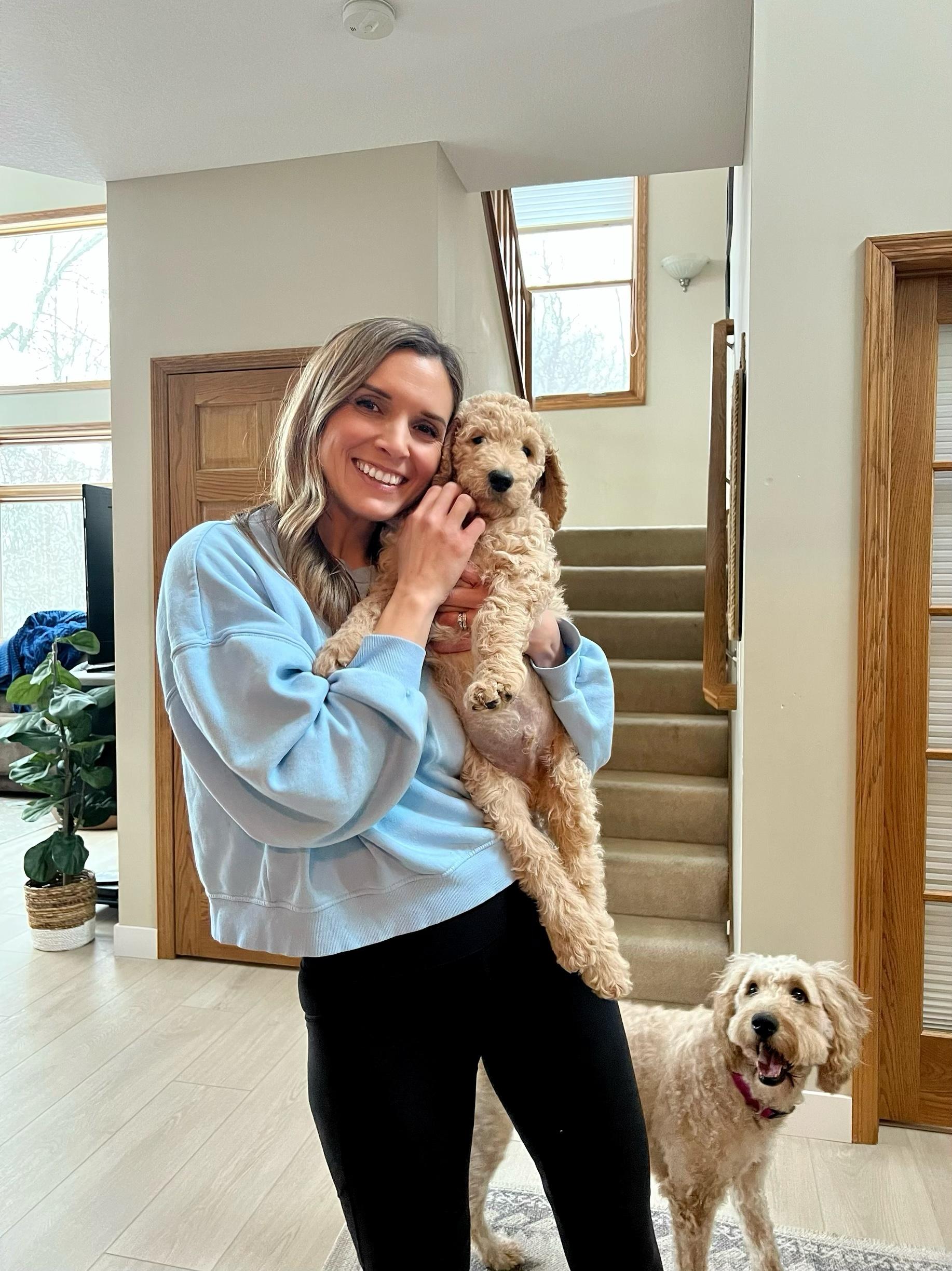 I'm Amanda D., the breeder behind Mabel Rue Doodles located in Rogers, MN. Our dogs are our beloved companions. We care deeply about this breed and are proud to be responsible Goldendoodle breeders. We are a simple, family-run breeding program offering loving and loyal companions to others. We focus on quality care and health with each litter we raise.
