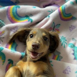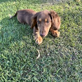 We adopted our mini dachshund puppy from Linda a couple months ago, and the entire experience was wonderful. From the very beginning, Linda was warm, responsive, and incredibly knowledgeable about the breed. She provided detailed information about puppy care, socialization, vaccinations, grooming, and tips for keeping dachshunds safe from back issues. What impressed us most was the level of care Linda puts into raising her puppies. She keeps them in a clean, loving environment and ensures they are well-socialized and prepared for their transition to a new home. Our Lottie girl is happy and healthy. We are so thankful to Linda for working with us through this process and for our new family member! We can't speak highly enough of the breeding program that Linda has in Mac Fam Dachshunds and would recommend her to anyone looking for a dachshund.