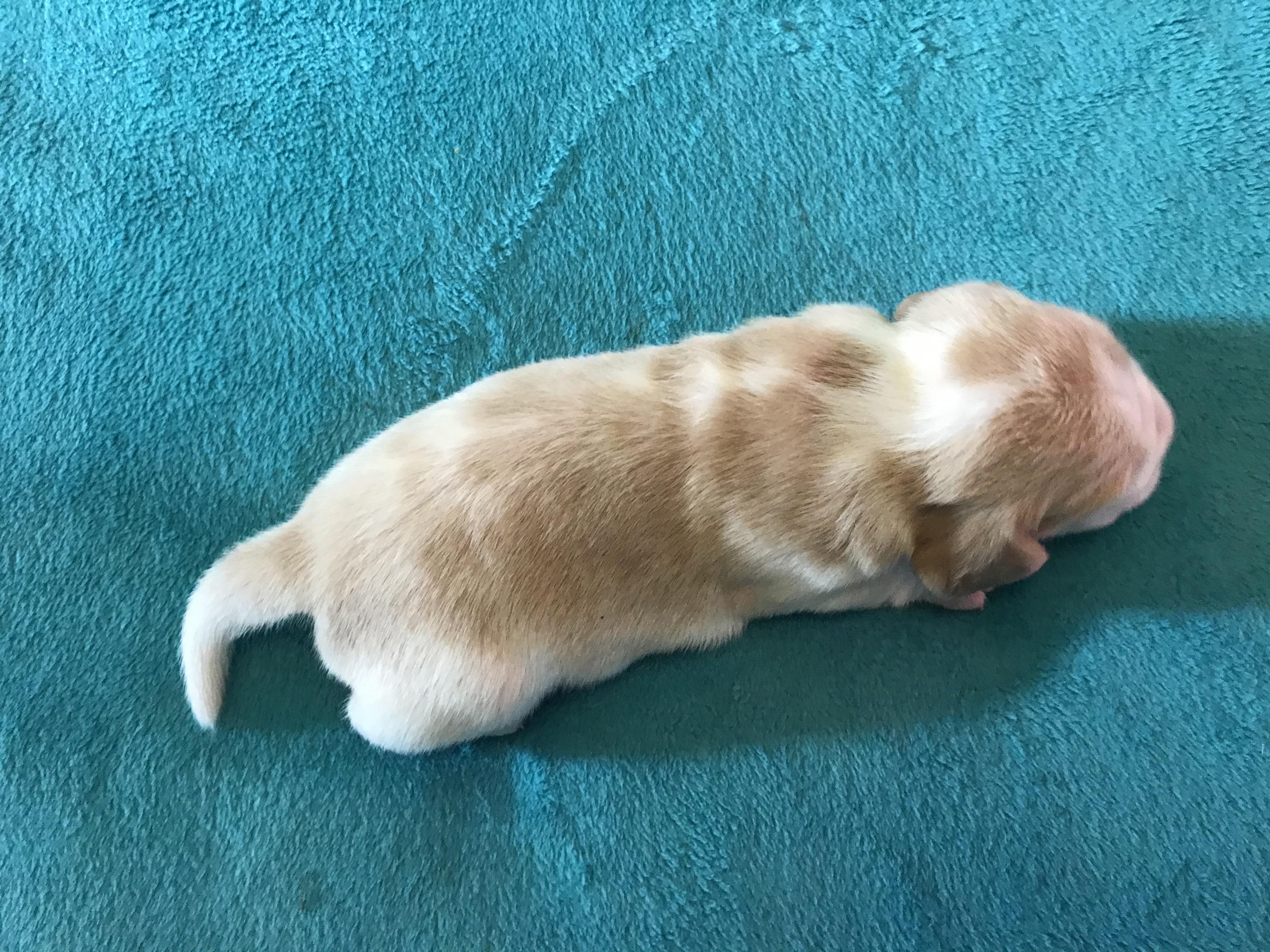 Our puppies include red and white and black red and white. Colors will vary depending on the parent dogs.