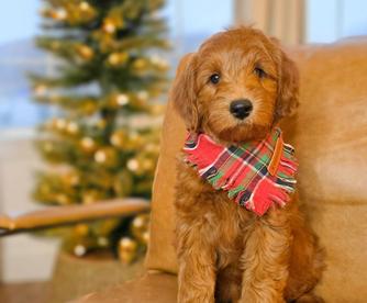 Our Cockapoo puppies include merle and brown. Goldendoodle puppies include cream, apricot, and red. Bernedoodle puppies include tri-color and merle. Colors will vary depending on the parent dogs.