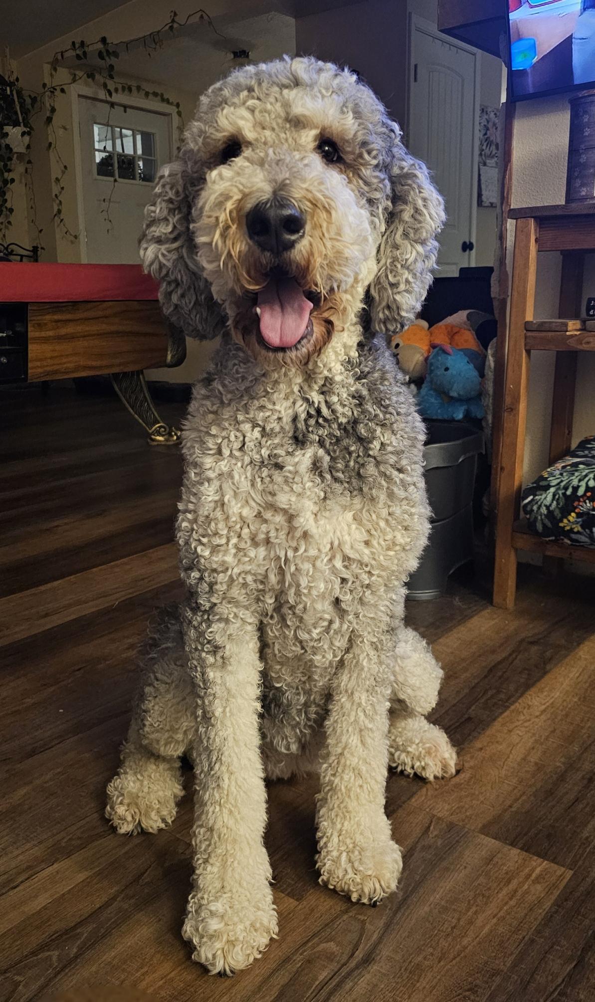 Frank is the ultimate Saint Berdoodle. He’s big and strong but has the gentlest heart—calm, patient, and affectionate with everyone he meets. He’s incredibly intelligent yet never loses his playful, goofy side. Loyal and protective without being overbearing, he knows exactly when to snuggle and when to play. With a soft, wavy coat and expressive eyes that seem to understand your every mood, he perfectly embodies the best of both the Saint Bernard and Poodle—loving, smart, confident, and wonderfully charming.