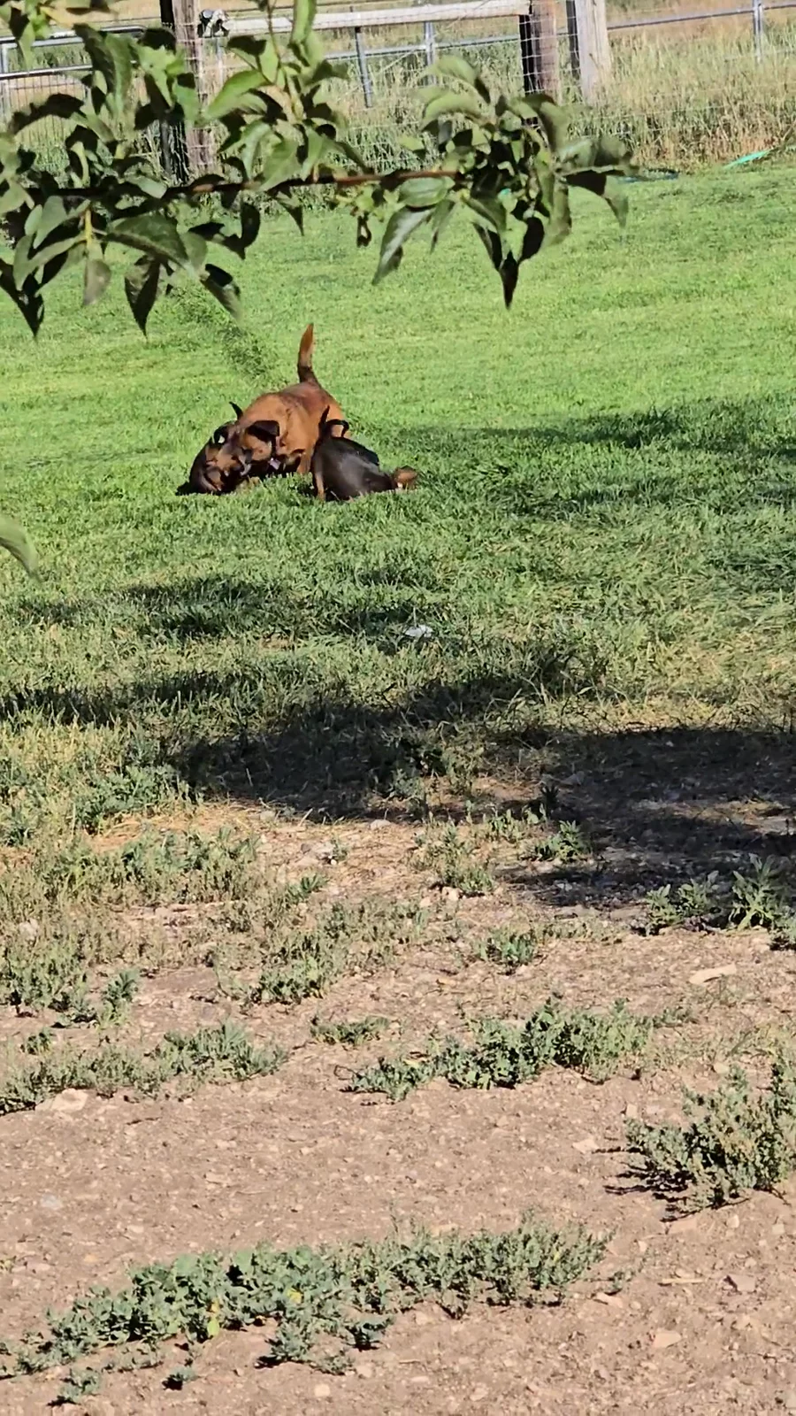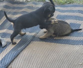 Puppies are 9 weeks have had 2nd vaccine and microchip. Playing with mom in video