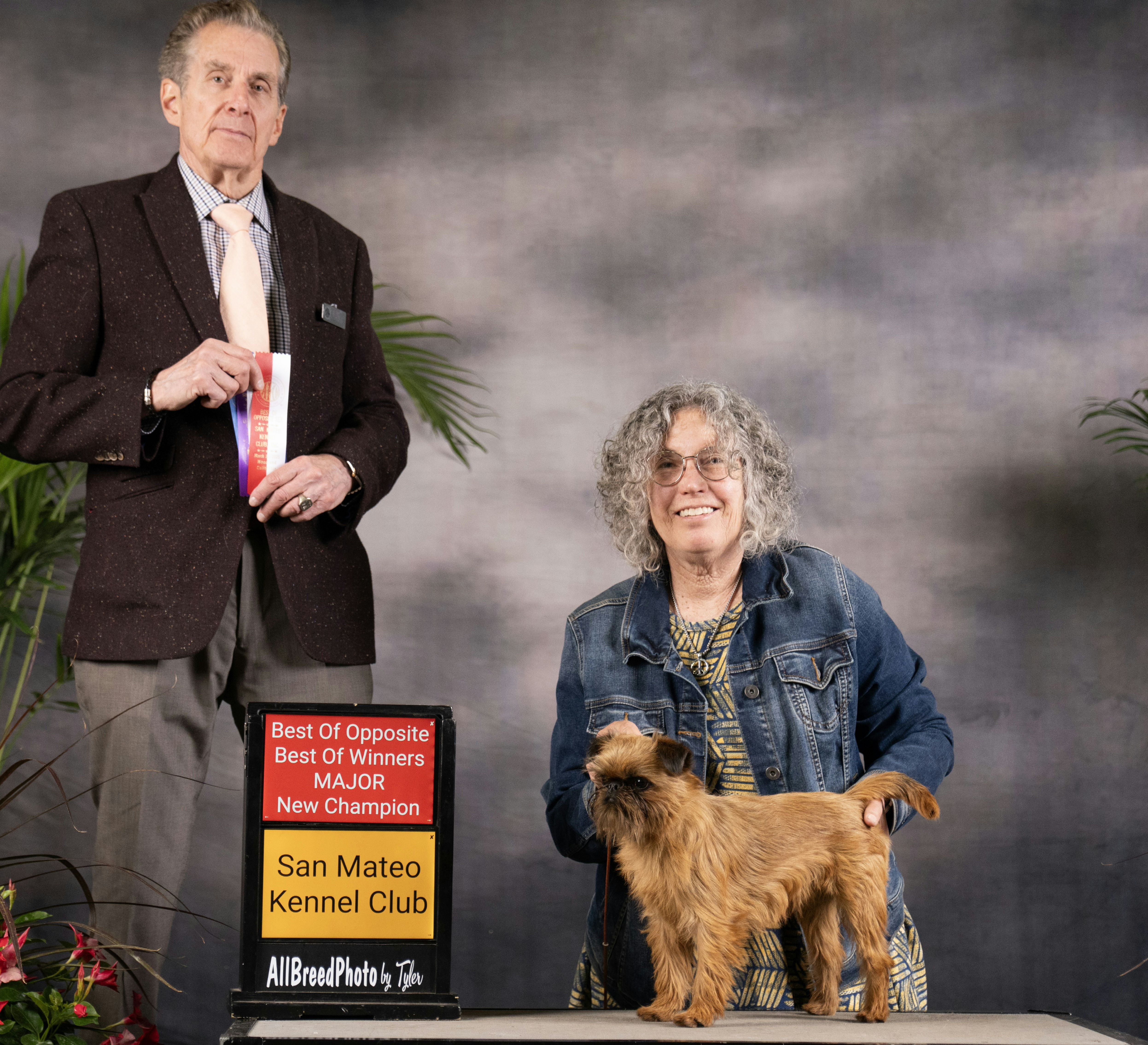 Oscar is a male Brussels Griffon. Carefully selected as a great representative of his breed, Elizabeth decided to make him part of their program. Elizabeth has passed Good Dog’s screening process, which involved a review of their breeding practices, environment, and the mental and physical health of their dogs.