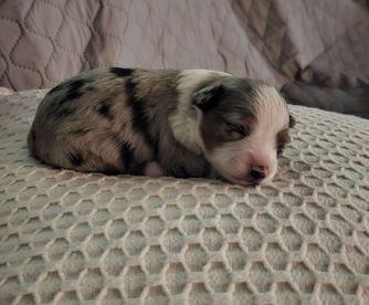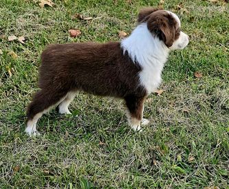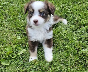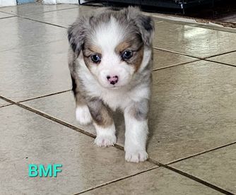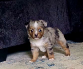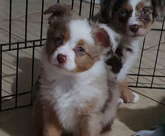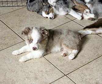 Our puppies include black tri, blue merle, red merle, and red tri. Colors will vary depending on the parent dogs.