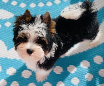 Our Biewer Terrier puppies are black tan and white. Colors will vary depending on the parent dogs.