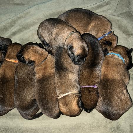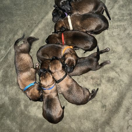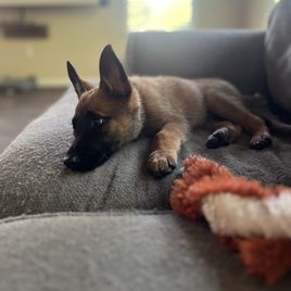 After thoroughly researching a lot of Malinois breeders and talking to several, Brittney was the one I knew I wanted a puppy from. She checked off all my boxes for a truly ethical and truly responsible and regularly goes way above and beyond. Plus, she is also super personable and a great communicator, which really helps when you're anxiously waiting for your puppy Lol. Once she had a puppy available for me, she kept me in the loop regularly and was always very responsive to questions. I was nervous about pickup day, because I had to fly home with puppy, but everything went very smoothly; not least thanks to the crate training prep work Brittney had already done. My puppy is still brand new as I picked her up only 3 days ago. She is a sweet and spunky little thing who is settling in nicely. I'll obviously have to put in my part to turn her into the wonderful adventure buddy and training partner I'm envisioning her to be, but I know I can trust that she has a very low risk of genetic issues and Brittney gave her a great foundation I can build on from here on. I'm looking forward to seeing the little girl grow up, but I'm also going to enjoy her puppyhood in the meantime.