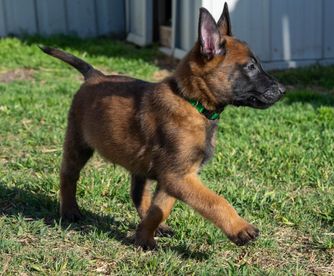 Our Belgian Malinois puppies include mahogany, red sable, fawn sable, and fawn. German Shepherd puppies include sable and black. Colors will vary depending on the parent dogs.