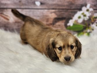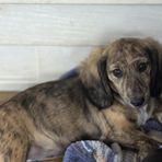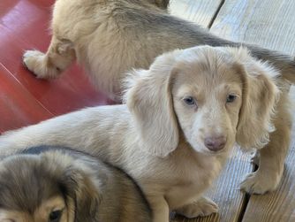 Delila is an ee or clear cream, hidden brindle. She is a very sweet and loving dachshund. Delila is the great granddaughter of one of our early females.