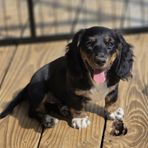 Dinero is a male Dachshund. Carefully selected as a great representative of his breed, Jennifer decided to make him part of their program. Jennifer has passed Good Dog’s screening process, which involved a review of their breeding practices, environment, and the mental and physical health of their dogs.