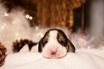 I strive to always produce better than the previous generation both in conformation and health. Our dogs are shown in AKC events when possible. Our goal is to produce sturdy, merry, little hounds to preserve the breed and bring joy to the families that love them.