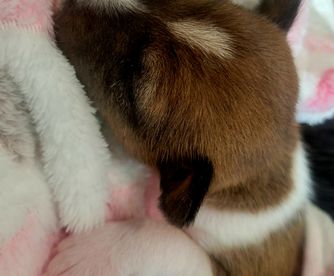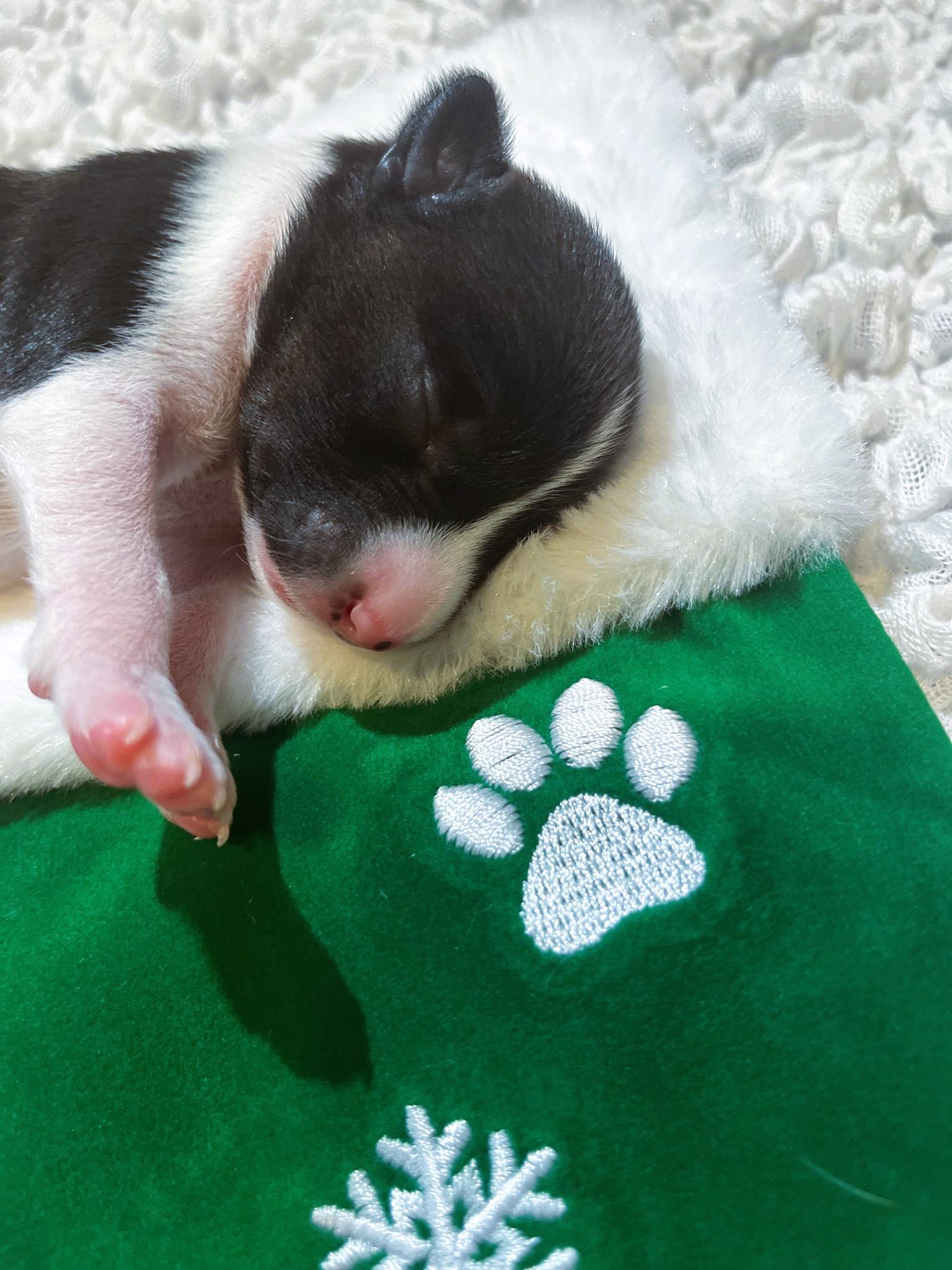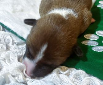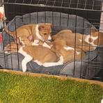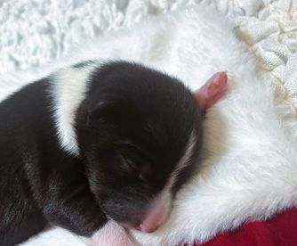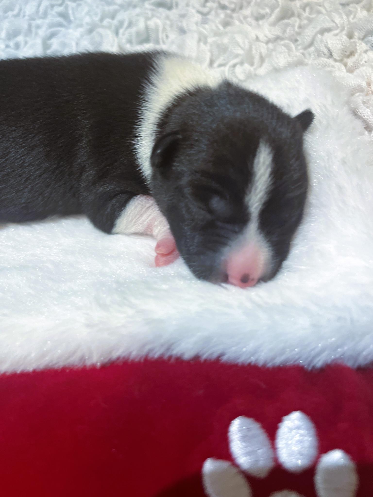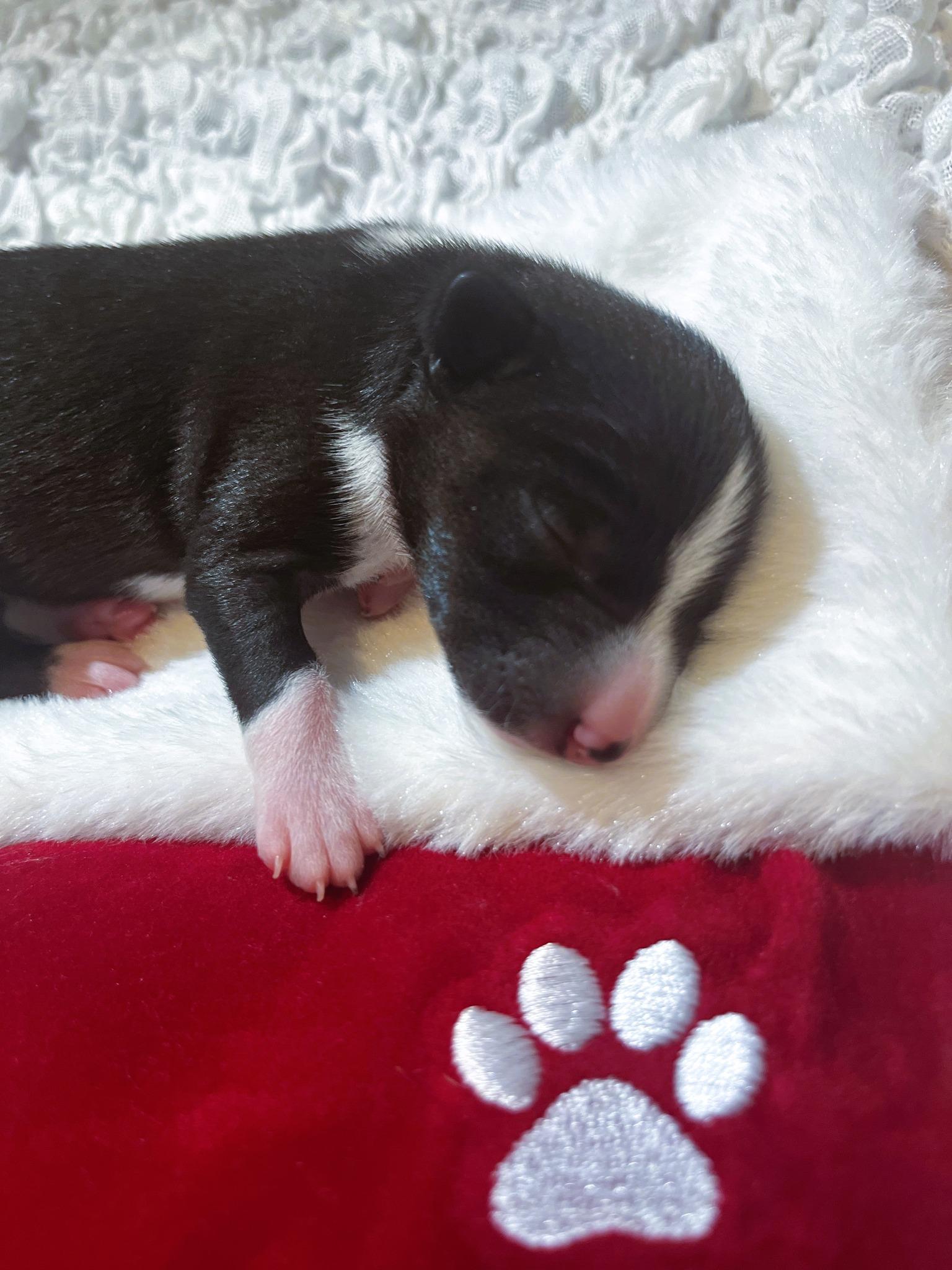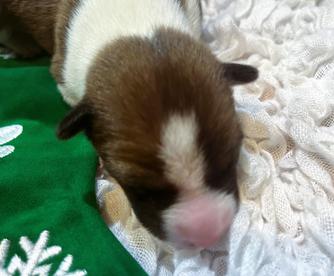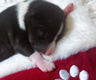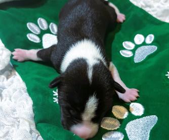 Our puppies include red and white and black and white. Colors will vary depending on the parent dogs.