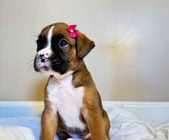 Brandy is AMAZING! She made me feel so welcome from the very first message, answering all my questions and showing how much she truly loves these babies. Our sweet Claire Bear is the newest addition to our boxer-loving family, and we couldn’t love her more—even when she’s acting like a little gremlin 😅. She’s got the best temperament and, of course, is already running the house like the boss she is. Thank you, Brandy—you made this whole experience so special! Xoxo 💕🐶