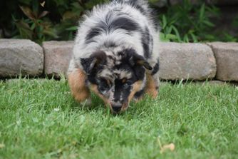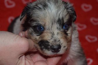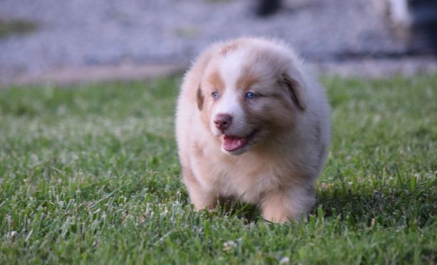 Our puppies include black, red merle, blue merle, and red. Colors will vary depending on the parent dogs.