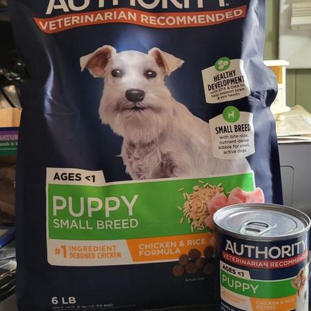 The puppies are doing great on Authority dog food (it's a PetSmart brand) I'm currently feeding them dry food for breakfast, canned at lunchtime, and dry for dinner. I'll be sending the puppies home with some dry and canned. Please continue to feed them the same food for the 1st few days. Then if/when you change brands to so gradually at first more Authority, then slowly more new food-less Authority. But please remember, a good quality food can have a life long affect on their health and abruptly changing brands can affect their digestive system at any age.