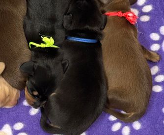 Our puppies include cream, red, chocolate, black and tan, and dapple. Colors will vary depending on the parent dogs.