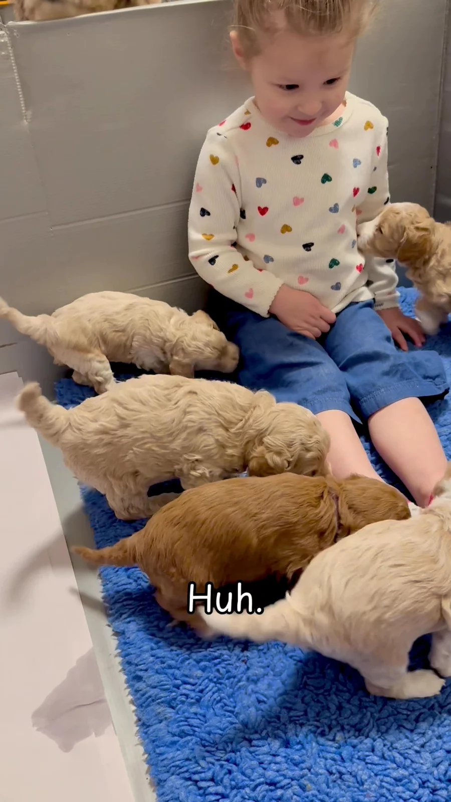 Magic valley family doodles was recommended to me by a friend who has one of their mini golden doodles who has such a calm, sweet temperament and great with kids. I found Kim to be very transparent about their ethical breeding practices, health clearances and breeding for temperament not just beautiful dogs. She knows so much about the breed and worked closely with us to find the very best fit for our family- a confident but calm dog who would do well in a busy family with lots of kids and two cats. I was impressed with how she gets the puppies socialized early around kids and out and about with car rides, crate training ect. We are SO in love with our puppy! She is incredibly SMART and eager to please, loves to cuddle as much as she loves running through the backyard with the kids and she’s already shown such a kind, gentle temperament. It’s very clear she got off to a great start with crate training, socialization and potty training. I’d recommend this breeder to everyone!