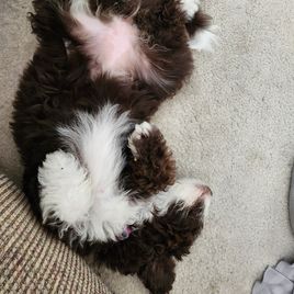 We love our sweet mini mountain-golden-doodle, Maple! I have been enormously thankful for the ‘partnership’ I’ve felt with Fonda throughout the process of selecting the perfect puppy, finalizing details, picking up our pup, and settling in for these first two weeks after bringing Maple home with us. We had researched and saved for a puppy for a long time before settling on a breeder. We needed a puppy with a very particular size, temperament and energy level to become a psychiatric support animal for our autistic son. I originally contacted Fonda about a pup from a different litter, but based on our needs she suggested little Maple and a couple of other pups instead. We did a videoconference to ‘meet’ Maple for ourselves. And Fonda answered all of my questions. She was quickly reachable by text and phone call and I knew she had our best interest in mind. She was also flexible with our pickup date and time. We had some scheduling conflicts and she was great to work with at arranging a good time. (We live a couple of hours away.) And then there is Maple herself - a loving, playful, people-loving pup who was clearly well bread and well cared for before we brought her home at ten weeks. She’s exactly what we hoped for! Maple has had some urinary challenges since bringing her home, and Fonda has been by our side with suggestions and support over the phone. She genuinely cares about our family and our sweet Maple. Can’t recommend her more!