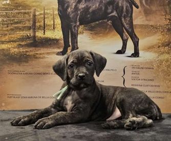 Corrine was amazing every step of the way with bringing us our sweet and loving cane corso, she was extremely knowledgeable about the breed and the supplement, breed care and matched us up perfectly with our gentle giant. Process was perfect and smooth and provided me with booklet information on food supplements dog insurance and everything we needed. Thank you again Corrine