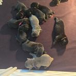 Our puppies include gray and fawn, chestnut brindle, black, black brindle, fawn, gray, gray brindle, and red. Colors will vary depending on the parent dogs.