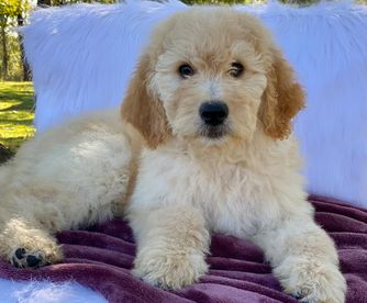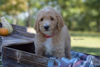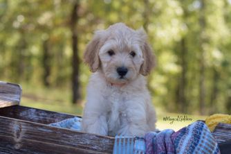 Our Golden Retriever puppies include golden and light golden. Goldendoodle puppies include cream, apricot, and red. Colors will vary depending on the parent dogs.