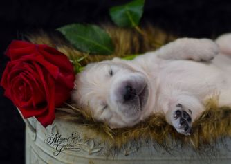 My mom began a small breeding program after my dad passed away. I helped her for 8 years and learned so much about breeding. Fast forward a few years when our daughter wanted a Golden Retriever; after working and saving every penny she could she finally brought home our very first Golden. It was love at first sight and our desire to share this amazing breed with others was born.