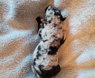 Our puppies include black merle and black. Colors will vary depending on the parent dogs.