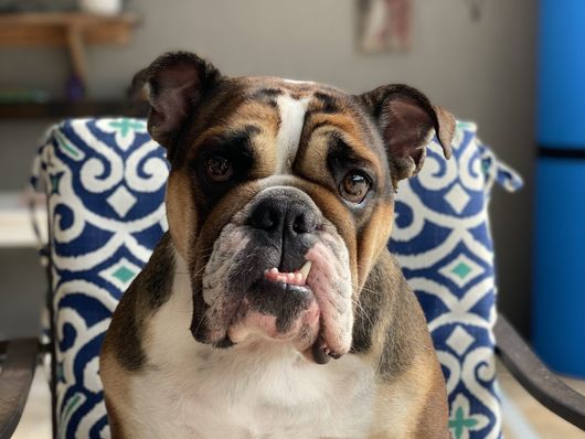 Stella is a female Bulldog. Carefully selected as a great representative of her breed, Lindsay decided to make her part of their program. Lindsay has passed Good Dog’s screening process, which involved a review of their breeding practices, environment, and the mental and physical health of their dogs.