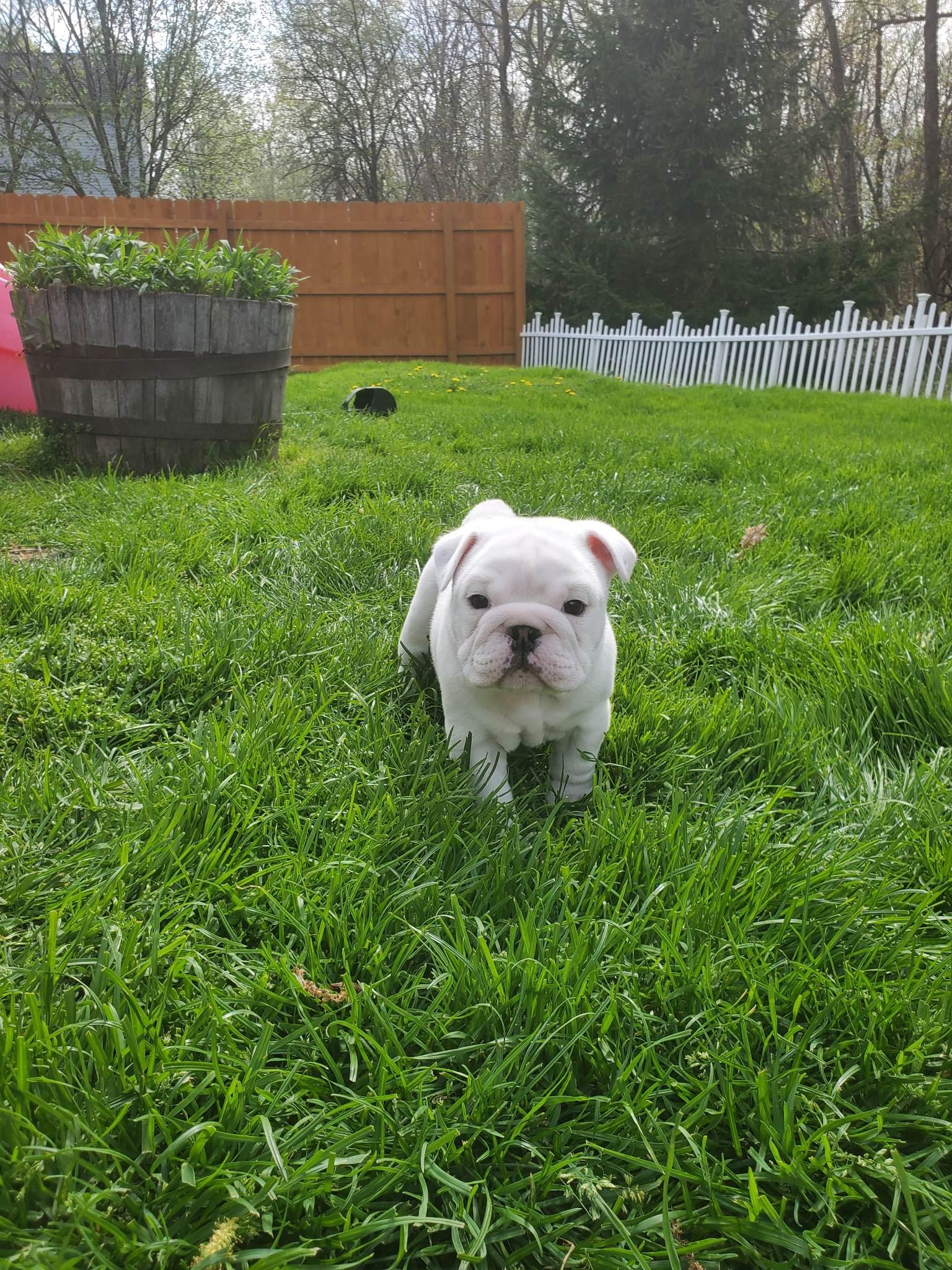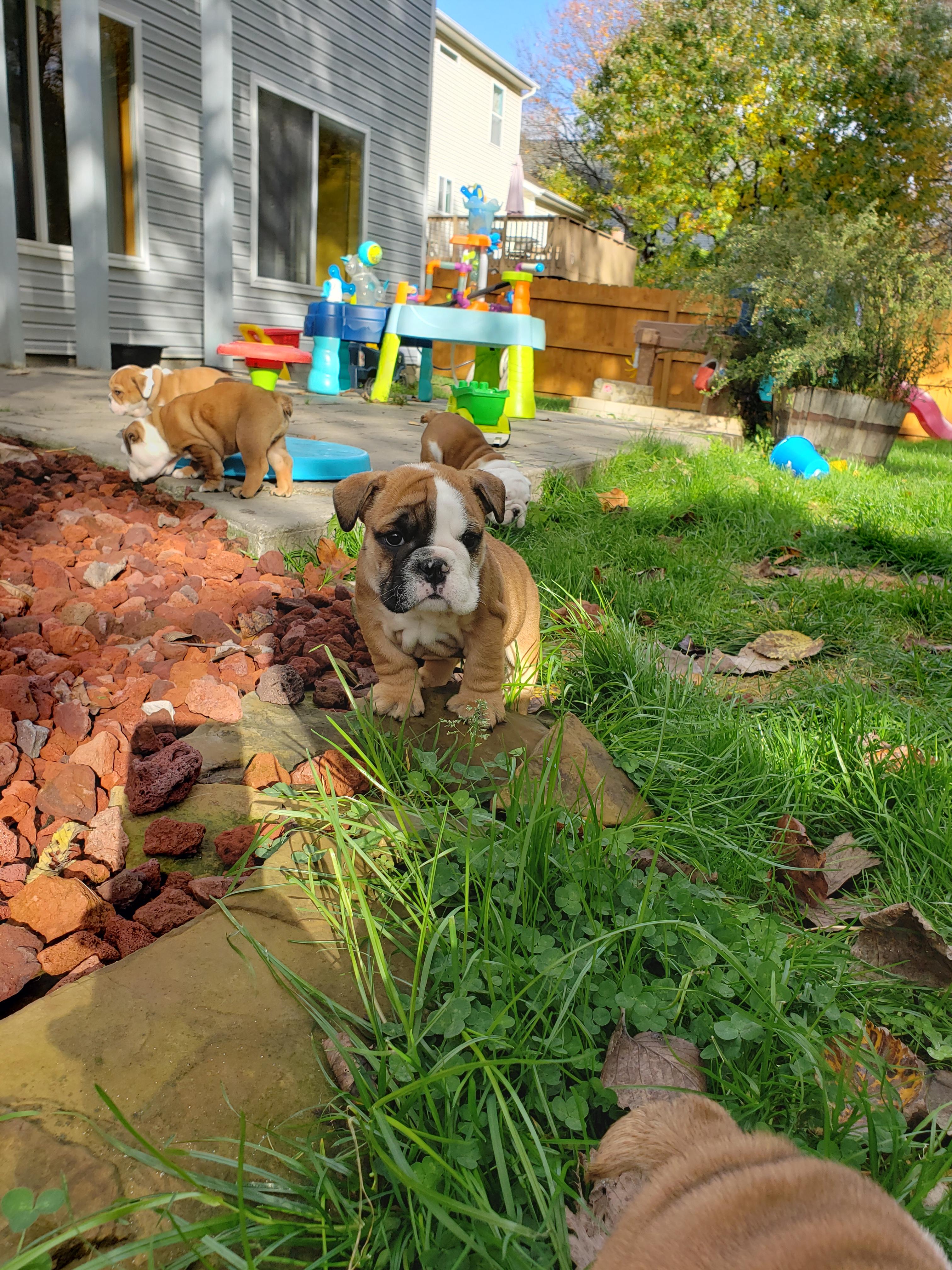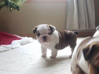 We have been breeding since 2012. We originally bred Bordeuax but found our true passion to be bulldogs. We brought home our first bulldog, Gabby, in 2016. It was honest to goodness love at first sight. I cried the day we picked her up and I knew we were destined for a life of bulldogs. Our first litter in 2018 produced my heart dog Kala who is featured in my bio photo.