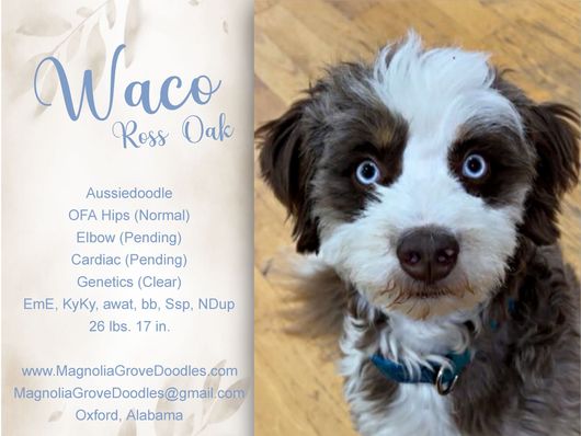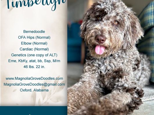 I'm Amy B., the breeder behind Magnolia Grove Doodles located in Oxford, AL. Magnolia Grove Doodles is a small, family-operated specialty dog breeder focusing on producing healthy poodle/doodle breeds with superior traits and temperaments including Aussiedoodles, Bernedoodles, and Australian Mountain Doodles.