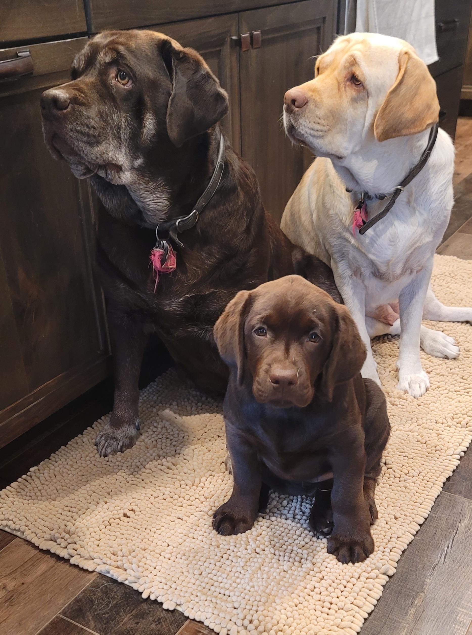 We focus on English Labrador Retrievers. Not the American. English have broader square heads/ faces, shorter and stockier build. We are a hobby breeder and strive for the health and strong breeding standards of the Labrador Retriever. Our fur babies are well loved and socialized. Our grandchildren (ages 15-5) are nearby and give lots of hugs and attention to the pups.