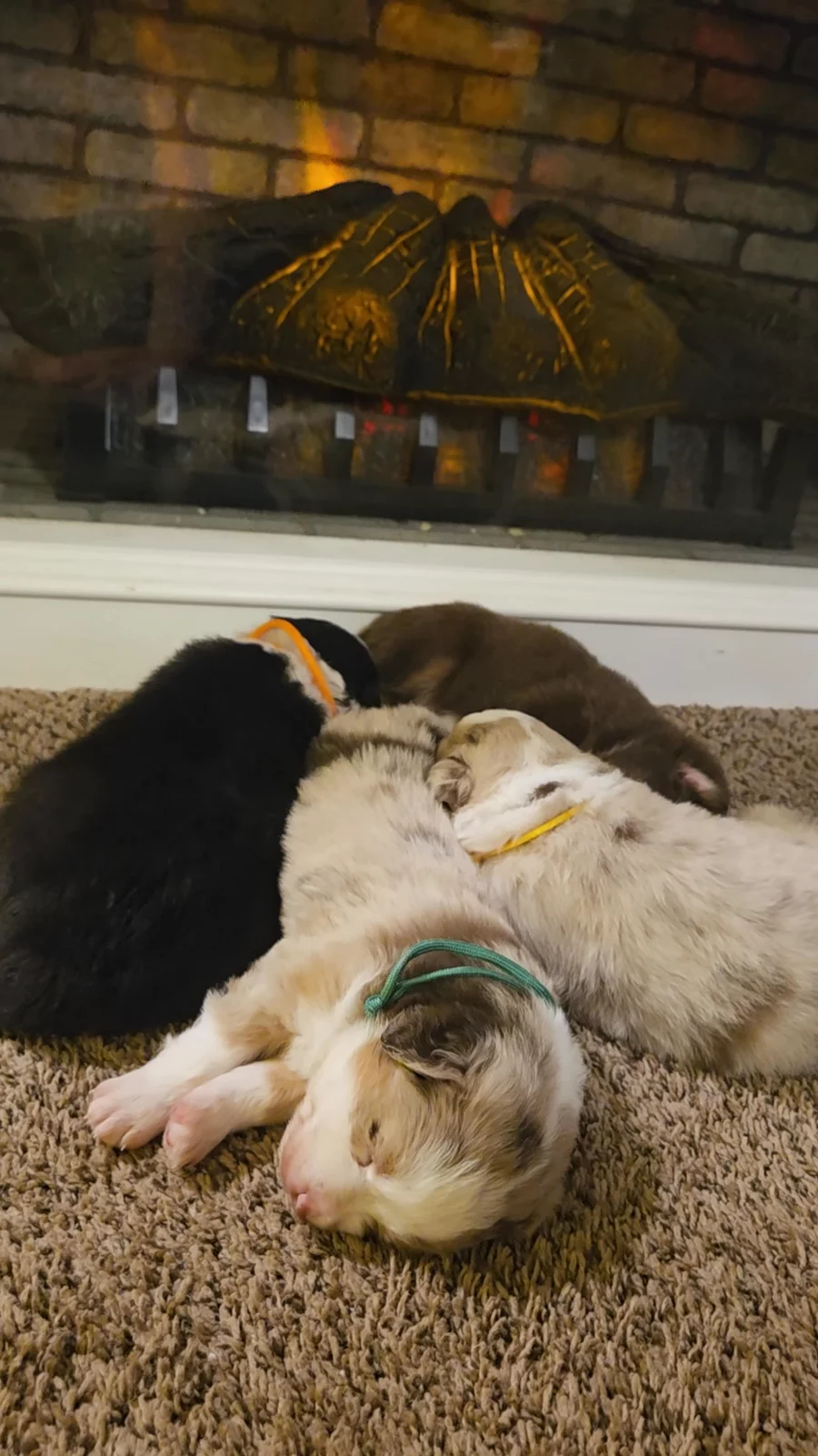 Our puppies include blue merle and red tri. Colors will vary depending on the parent dogs.