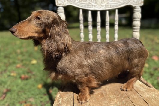 Oliver is a male Dachshund. Carefully selected as a great representative of his breed, Whitney decided to make him part of their program. Whitney has passed Good Dog’s screening process, which involved a review of their breeding practices, environment, and the mental and physical health of their dogs.