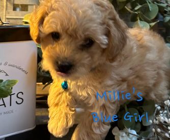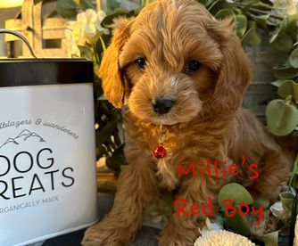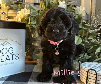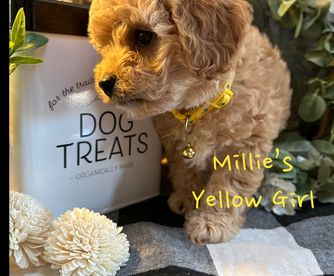 Millie/Retired and living happily in her forever home where she has been since she was a puppy is a female Cavapoo. Carefully selected as a great representative of her breed, Bev decided to make her part of their program. Bev has passed Good Dog’s screening process, which involved a review of their breeding practices, environment, and the mental and physical health of their dogs.