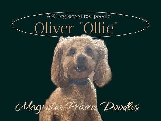 Ollie (Oliver Theodore) is a spunky red toy poodle who can run and be crazy with the best of them and then climb into your lap for a long cuddle and snooze. Every dog is his new best friend and every person he comes in contact with gets a generous supply of love from Ollie. He would love to be a super involved "dad" to his babies..if mom would just let him come into the room!